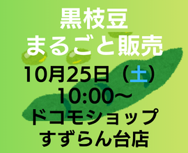 ・ 会場がセブン-イレブン神戸御影八色橋東店さんの場合、黒枝豆をまるごと入れる袋(黒枝豆代を兼ねる)を店内でお買い求め頂いた後に、会場で黒枝豆選定をして頂きます。